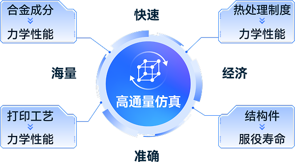 快速构建合金成分、打印工艺,热处理制度与⼒学性能指标的仿真数据集,加速材料及配套工艺优化